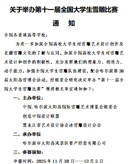 关于举办第十一届全国大学生雪雕比赛通知