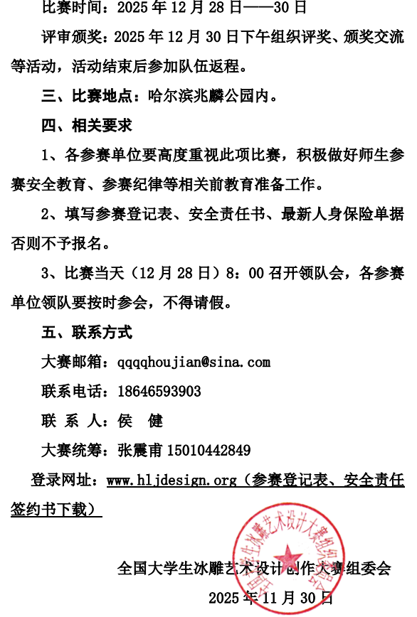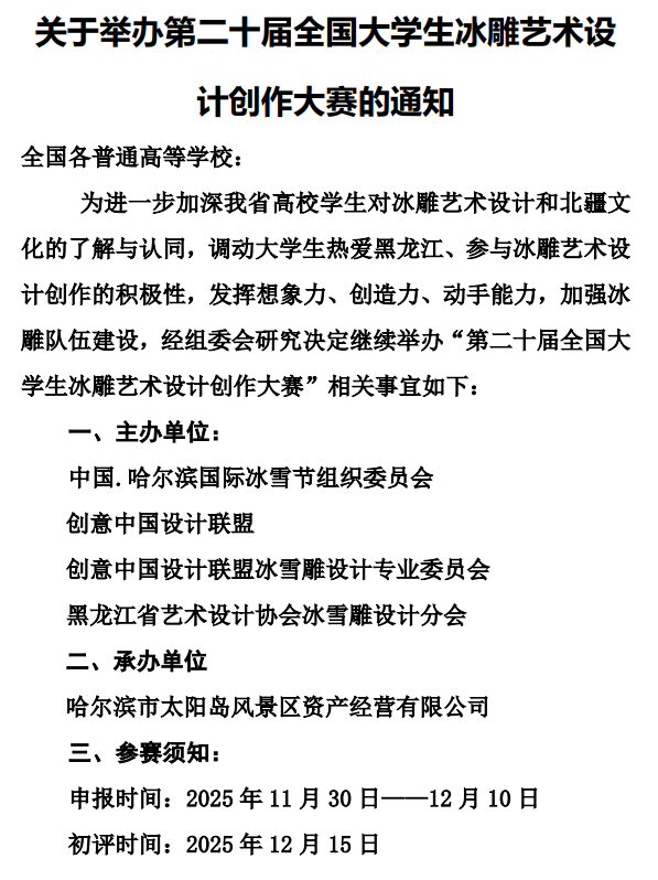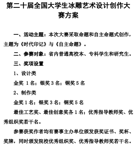 关于举办第二十届全国大学生冰雕艺术设计创作大赛的通知